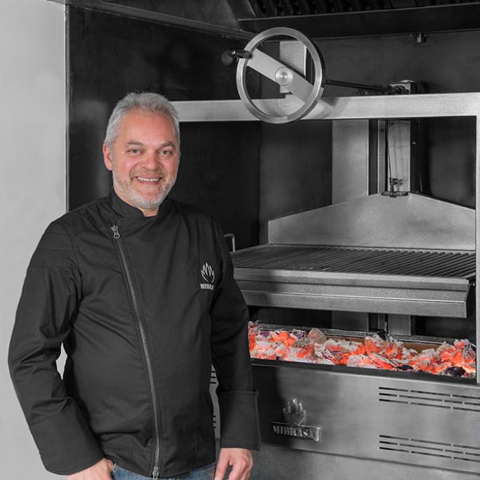 In keeping in harmony with this philosophy, Pellicer incorporates the element of fire to his kitchen with his Mibrasa GMB100 Parrilla open grill. Embers, smoke, ash and flames, characteristics unique to cooking with open fire and vital for Pellicer to achieve his goal: “simplicity is my authenticity”.